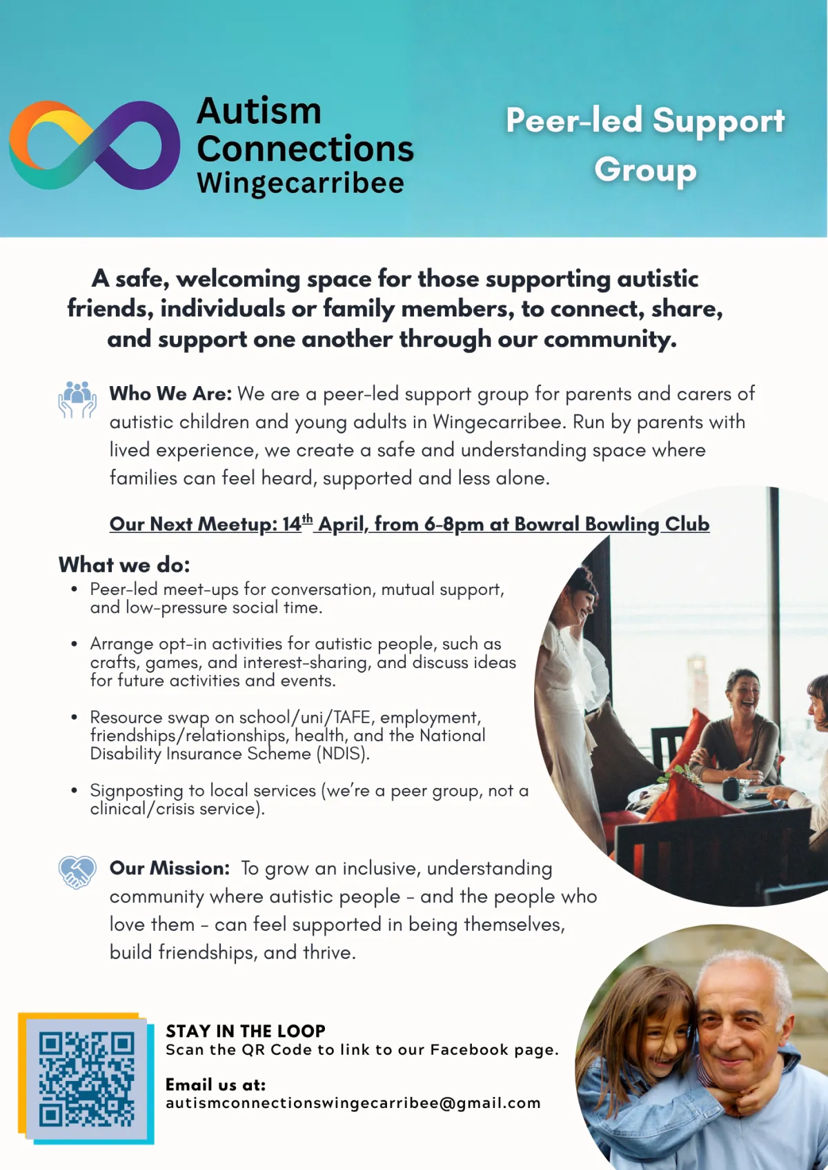 If you’d like to get involved — attend an event, join a support group, volunteer, partner with us, or simply ask a question — we’d love to hear from you.